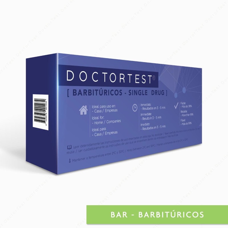 DOCTORTEST® BAR [ Barbitúricos - Single Drug ] es la solución perfecta para ti. Nuestra prueba es muy fácil de usar. No te arriesgues utilizando pruebas menos precisas, elige DOCTORTEST® BAR [ Barbitúricos - Single Drug ] para obtener resultados de calidad con un 99% de fiabilidad.